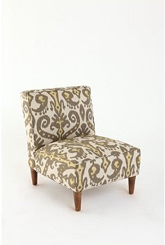 I don't have a home for the last two pieces, but they are really great all the same. The mid-century inspired coffee table is perfect for any small scale seating area, and it's only $178. The ikat slipper chair is a bit trendy, but still cool, and only $328.